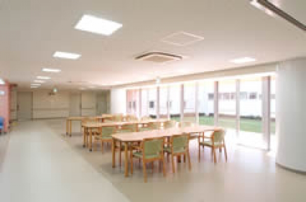 廊下も広くとっており、各階に食堂ホールを備えております。毎月行われる行事イベントも食堂で執り行っております。1階は、中庭を眺めながら食事が可能です。