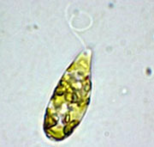 パラミロンは微細藻類「ユーグレナ」にしか含まれていない食物繊維成分だ。ユーグレナとは、池や田んぼなど、私たちの身近にいるミドリムシのこと。ユーグレナには細胞を変形させて運動することができる動物的な性質と、光合成するという植物的な性質があり、動物と植物の中間的な存在と言われている。