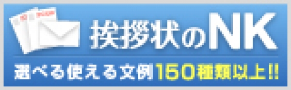 挨拶状の印刷の事なら格安はがき印刷、挨拶状印刷専門店「挨拶状のNK」へ。法事・法要典返し・忌明け・結婚式・転勤・引越・開業・事務所移転・役員交代・周年記念など豊富な文例で様々なシチュエーションの挨拶状のハガキ印刷が可能です。宛名印刷、封入代行、投函代行、切手貼り代行などオプションサービスも充実