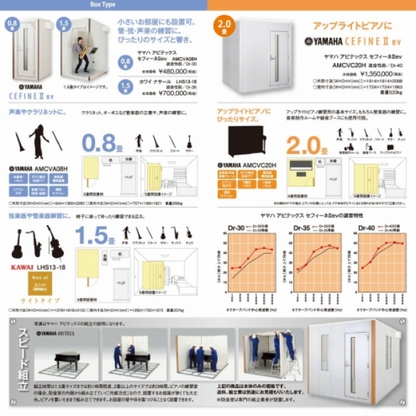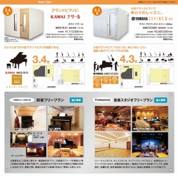 弦楽器、管楽器、声楽などを対象に、防音体験ができます。