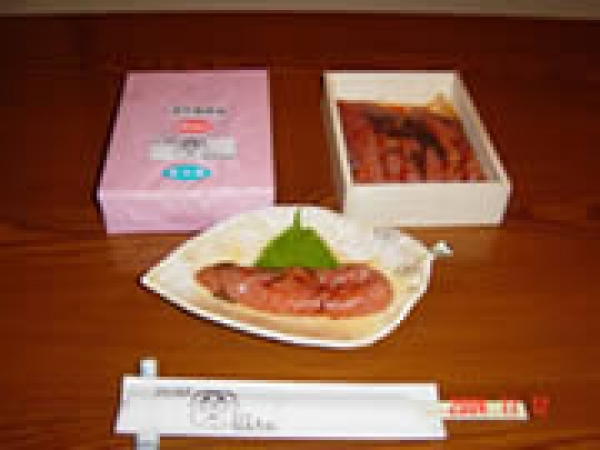 新潟の雪中梅を使って漬け込んだ、ゆずとこんぶの風味が、ほのかにただよう明太子です。来店された著名人の方も食べて納得、必ずお土産にお買い上げいただいております。